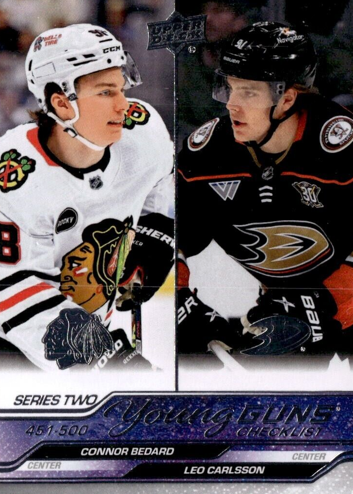 2023-24 Upper Deck Series 2 Connor Bedard Leo Carlsson Young Guns Checklist #500