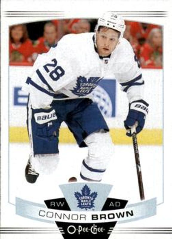 The Connor Brown 2019 O-Pee-Chee #32 Base card is 1 of 8 Connor Brown's card variations in the 2019 O-Pee-Chee set being tracked by Sports Card Investor, including Blue Border, Gold Border, Red Border, Red Border Blank Back, and Retro.