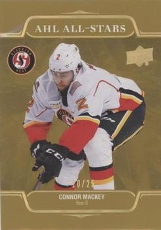 The Connor Mackey 2021 Upper Deck AHL #AS-15 AHL All Stars - Gold /25 card is 1 of 3 Connor Mackey's card variations in the 2021 Upper Deck AHL set being tracked by Sports Card Investor, including AHL All Stars, and AHL All Stars - Red.