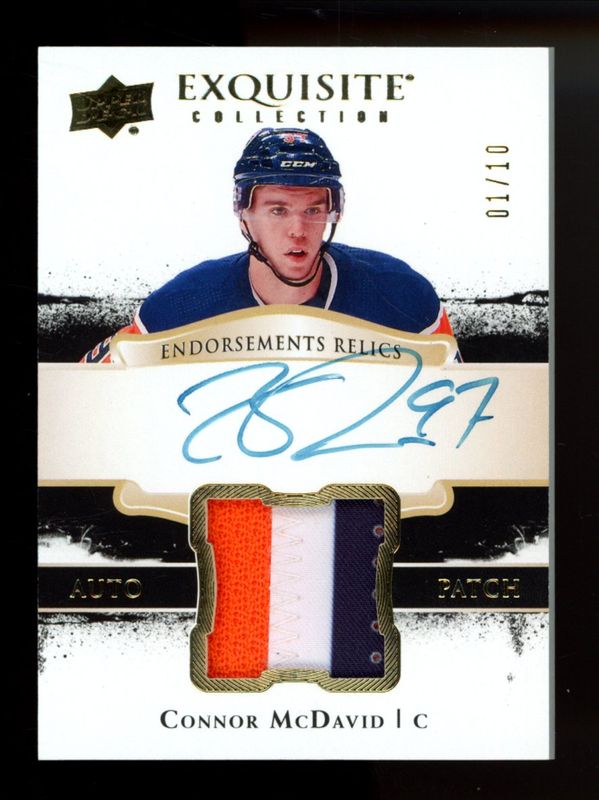 Connor McDavid 2017 Upper Deck The Cup #ER-CM Exquisite Collection Endorsements Autographs - Relics /50 RAW Price Guide