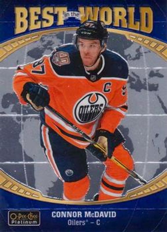 The Connor McDavid 2019 O-Pee-Chee Platinum #BW-6 Best in the World card is 1 of 27 Connor McDavid's card variations in the 2019 O-Pee-Chee Platinum set being tracked by Sports Card Investor, including #150b Base, #150 Base, #150 Matte Pink, #150 Pond Hockey, and #150 Rainbow.