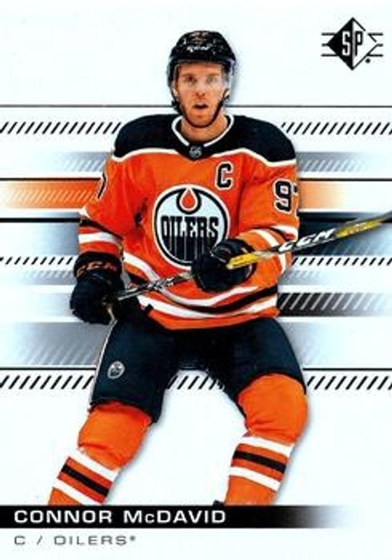 The Connor McDavid 2019 SP #19 Base /1199 card is 1 of 6 Connor McDavid's card variations in the 2019 SP set being tracked by Sports Card Investor, including Blue, Authentic Profiles - Blue, Authentic Profiles Jersey, Authentic Profiles Signatures, and Authentic Profiles /649.