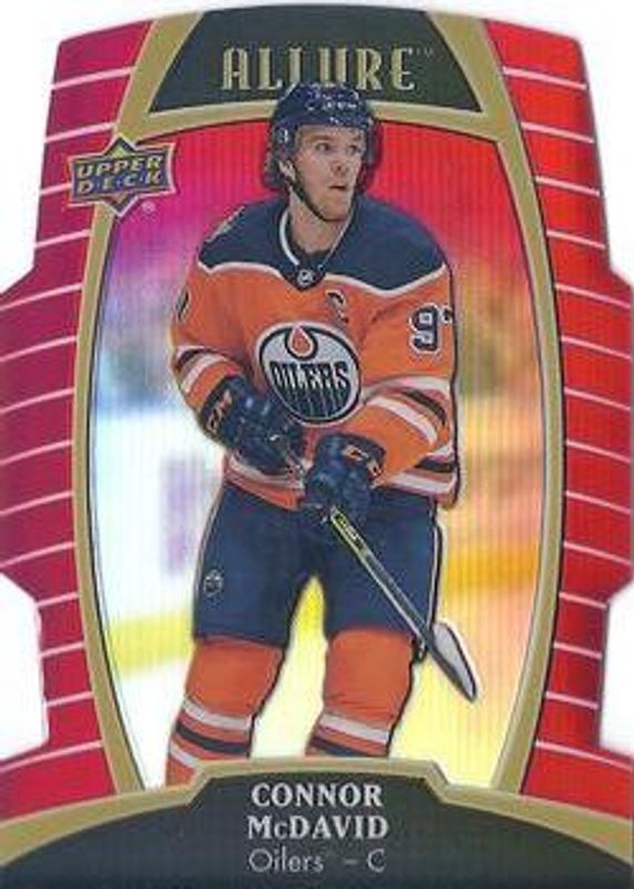 The Connor McDavid 2019 Upper Deck Allure #1 Red Rainbow card is 1 of 35 Connor McDavid's card variations in the 2019 Upper Deck Allure set being tracked by Sports Card Investor, including Base, Pewter, White Rainbow, Yellow Taxi, and Orange Slice /199.