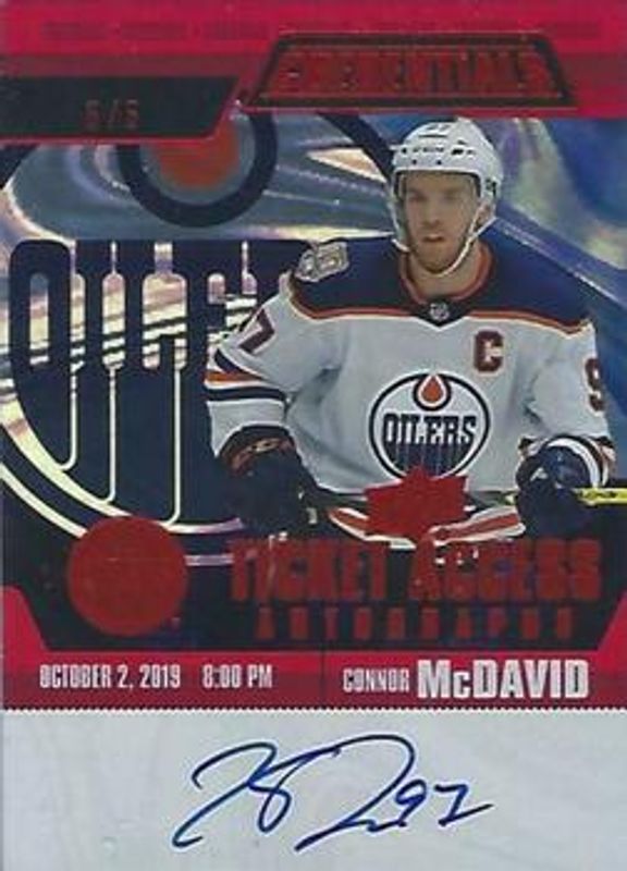 Connor McDavid 2019 Upper Deck Credentials #TAAV-CM Ticket Access Autographs Photo Variant Red /5 RAW Price Guide