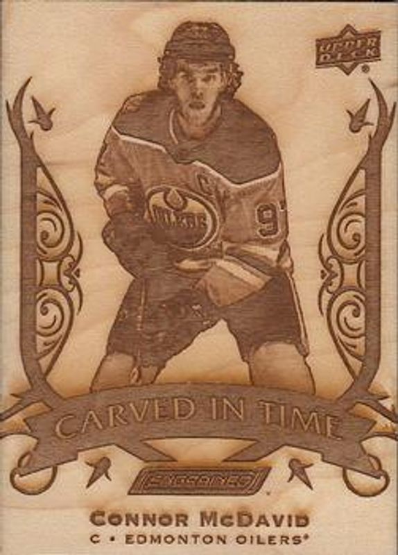 The Connor McDavid 2019 Upper Deck Engrained #CT-20 Carved in Time card is 1 of 21 Connor McDavid's card variations in the 2019 Upper Deck Engrained set being tracked by Sports Card Investor, including Base /299, Ebony /49, Mahogany /10, Rosewood /1, and Carved in Time Signatures.