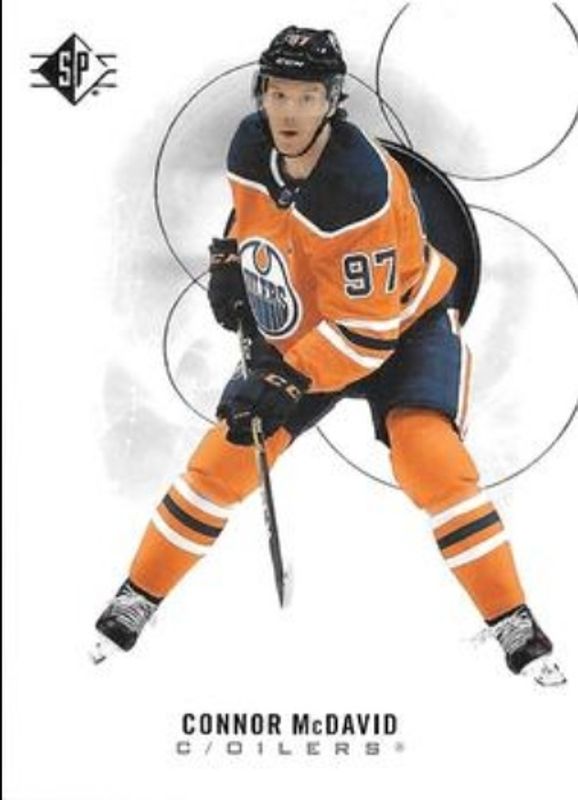 The Connor McDavid 2020 SP #90 Base /2299 card is 1 of 14 Connor McDavid's card variations in the 2020 SP set being tracked by Sports Card Investor, including Blue, Authentic Profiles - Blue, Authentic Profiles Jersey, Authentic Profiles - Pyrotechnic Gold, and Authentic Profiles Signatures.