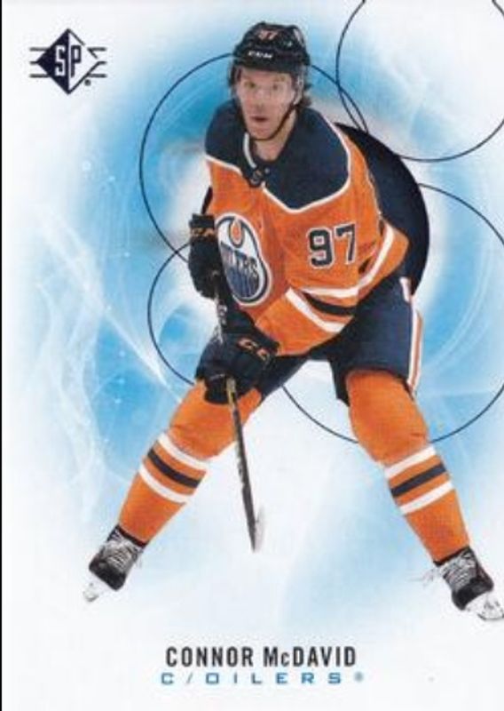 The Connor McDavid 2020 SP #90 Blue card is 1 of 14 Connor McDavid's card variations in the 2020 SP set being tracked by Sports Card Investor, including Base /2299, Authentic Profiles - Blue, Authentic Profiles Jersey, Authentic Profiles - Pyrotechnic Gold, and Authentic Profiles Signatures.