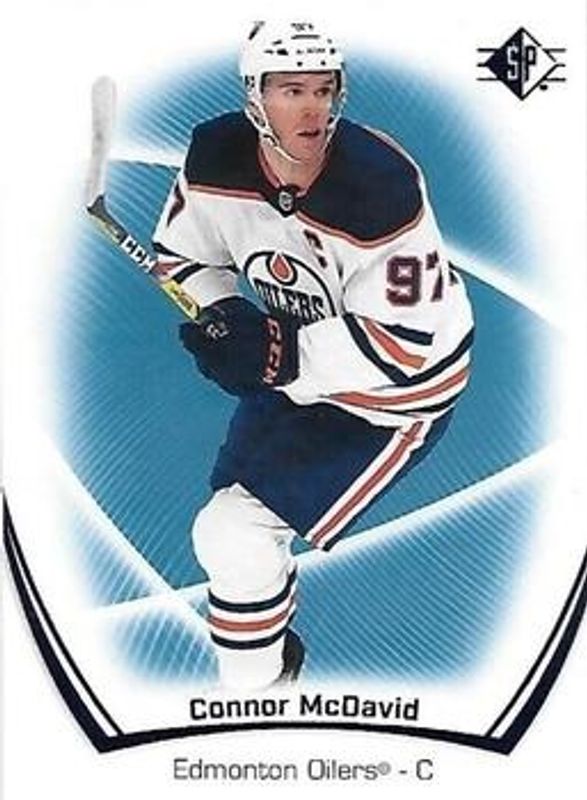 The Connor McDavid 2021 SP #1 Blue card is 1 of 14 Connor McDavid's card variations in the 2021 SP set being tracked by Sports Card Investor, including Authentic Profiles - Blue, Authentic Profiles Jersey, Authentic Profiles - Patterned Foilboard, Authentic Profiles Patterned Foilboard - Gold, and Authentic Profiles Patterned Foilboard - Green.