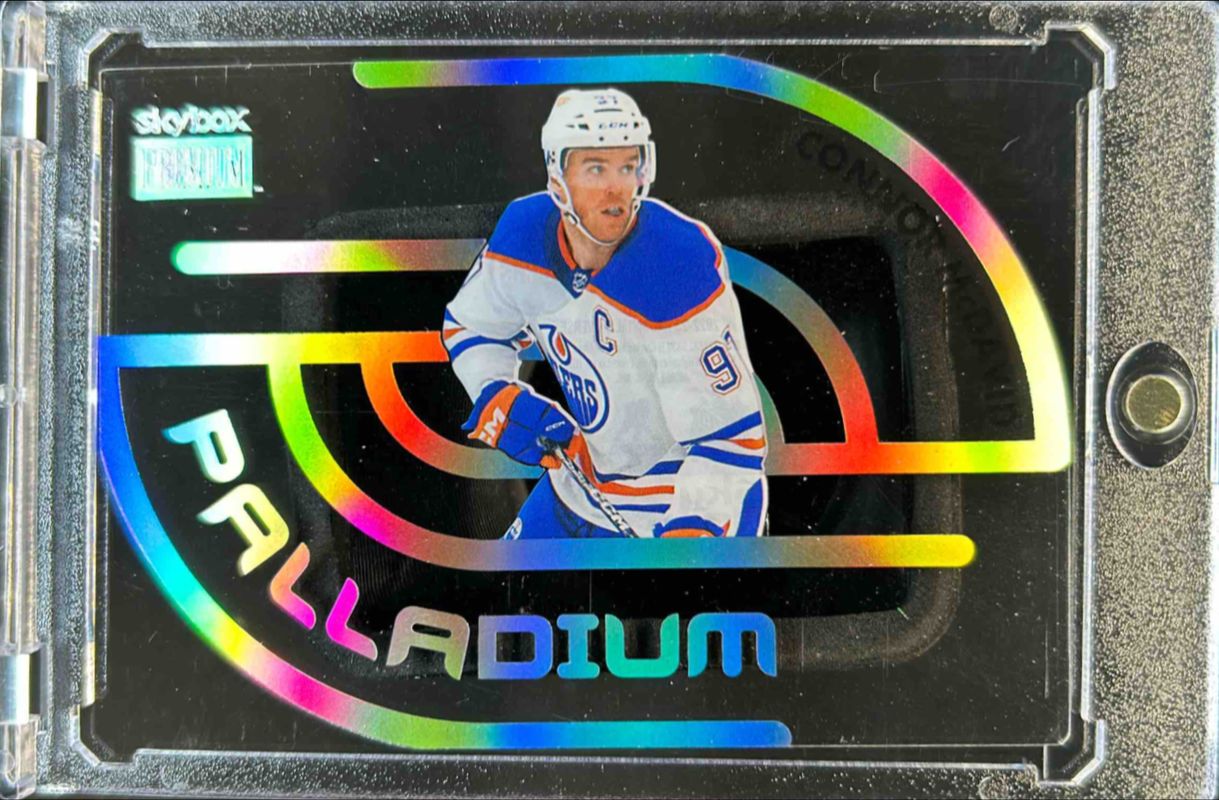 The Connor McDavid 2022 Metal Universe #P-9 Palladium card is 1 of 44 Connor McDavid's card variations in the 2022 Metal Universe set being tracked by Sports Card Investor, including Base, Spectrum FX Blue, Auto Silver FX /349, Spectrum FX Purple /199, and Precious Metal Gems Green /100.