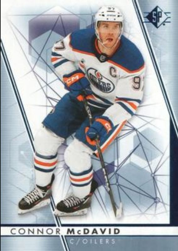The Connor McDavid 2022 SP #97 Blue card is 1 of 15 Connor McDavid's card variations in the 2022 SP set being tracked by Sports Card Investor, including Base /399, Authentic Profiles - Blue, Authentic Profiles Jersey, Authentic Profiles - Patterned Foilboard, and Authentic Profiles - Patterned Foilboard Gold.