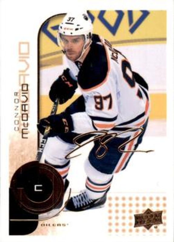 The Connor McDavid 2022 Upper Deck MVP #1 20th Anniversary card is 1 of 41 Connor McDavid's card variations in the 2022 Upper Deck MVP set being tracked by Sports Card Investor, including Base, Blue Script, Gold Script, Ice Battles, and Silver Script.