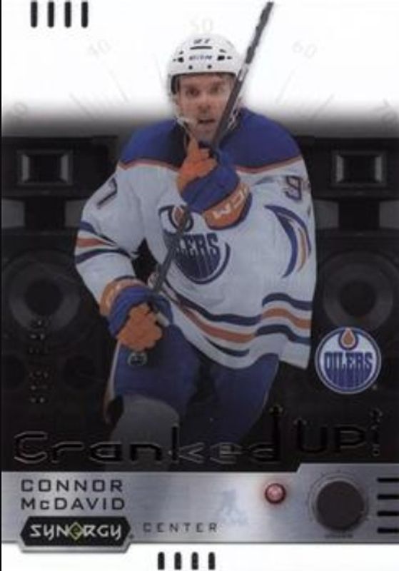 The Connor McDavid 2023 Upper Deck Synergy #CR-CM Cranked Up /849 card is 1 of 39 Connor McDavid's card variations in the 2023 Upper Deck Synergy set being tracked by Sports Card Investor, including Base /24, Red, Red Codes, Purple /99, and Gold /25.
