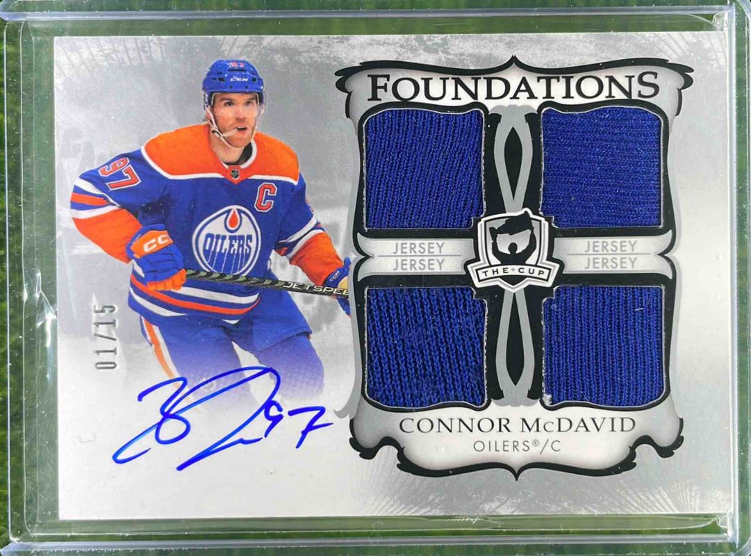 Connor McDavid 2023 Upper Deck The Cup #F-MC Foundations Quad Jersey - Auto /15 RAW