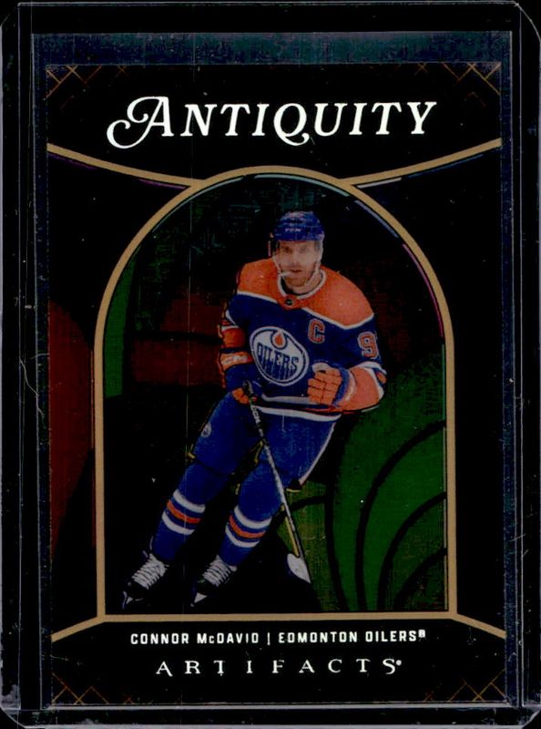 The Connor McDavid 2024 Upper Deck Artifacts #AT-1 Antiquity card is 1 of 30 Connor McDavid's card variations in the 2024 Upper Deck Artifacts set being tracked by Sports Card Investor, including Foilboard, Foilboard Gold, Neon Green, Plexi, and Silver /699.