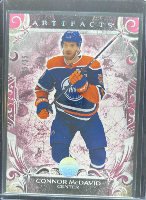 The Connor McDavid 2024 Upper Deck Artifacts #152 Material - Emerald /35 card is 1 of 30 Connor McDavid's card variations in the 2024 Upper Deck Artifacts set being tracked by Sports Card Investor, including Foilboard, Foilboard Gold, Neon Green, Plexi, and Silver /699.