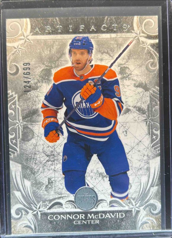 The Connor McDavid 2024 Upper Deck Artifacts #152 Silver /699 card is 1 of 30 Connor McDavid's card variations in the 2024 Upper Deck Artifacts set being tracked by Sports Card Investor, including Foilboard, Foilboard Gold, Neon Green, Plexi, and Ruby /399.
