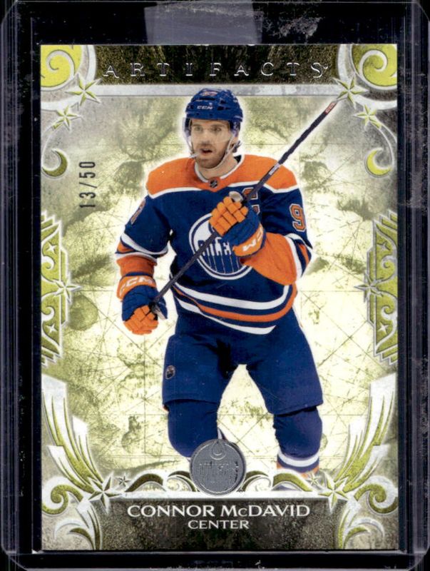 The Connor McDavid 2024 Upper Deck Artifacts #152 Yellow /50 card is 1 of 30 Connor McDavid's card variations in the 2024 Upper Deck Artifacts set being tracked by Sports Card Investor, including Foilboard, Foilboard Gold, Neon Green, Plexi, and Silver /699.