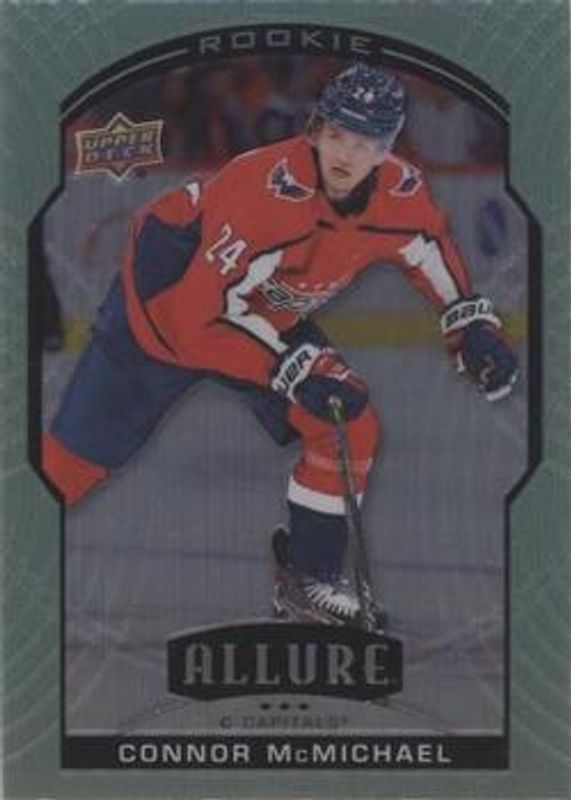 The Connor McMichael 2020 Upper Deck Allure #94 Steel Rookie card is 1 of 53 Connor McMichael's card variations in the 2020 Upper Deck Allure set being tracked by Sports Card Investor, including #131 Base, #94 Base, #94 2005 Shield, #94 Black Rainbow, and #94 Blue China.