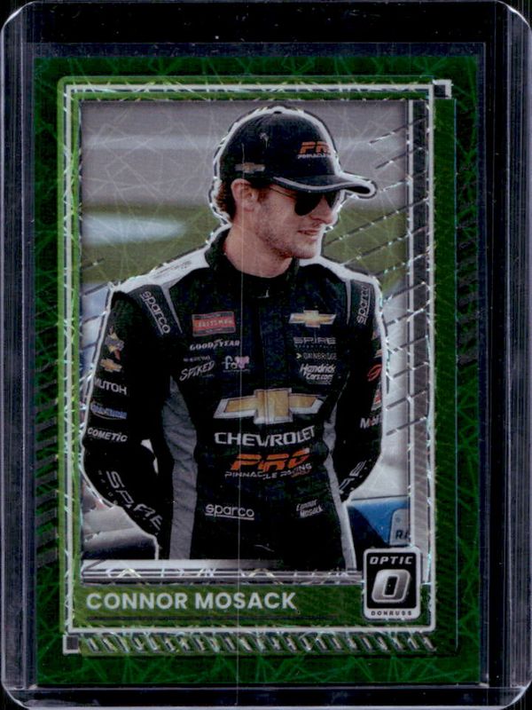 The Connor Mosack 2025 Donruss NASCAR #76 Base Optic - Green Velocity /99 card is 1 of 51 Connor Mosack's card variations in the 2025 Donruss NASCAR set being tracked by Sports Card Investor, including Base, Laser, Red /299, Blue /199, and Lime Green /199.