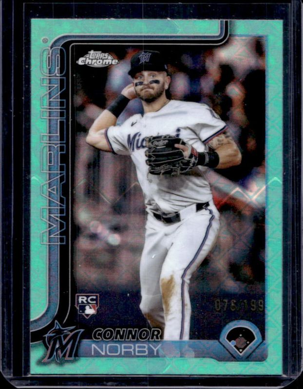 2025 Topps Chrome LogoFractor Connor Norby RC Aqua Refractor /199 Marlins