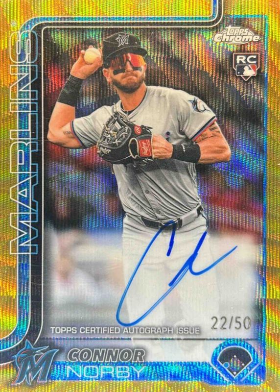 Recent Sales of Connor Norby 2025 Topps Chrome #RA-CN Rookie Autographs - Gold Wave Refractor /50 Raw