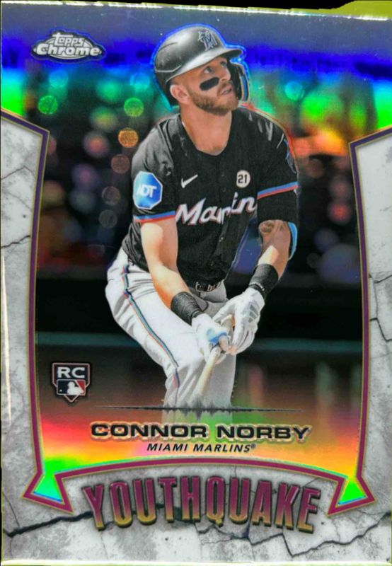 The Connor Norby 2025 Topps Chrome #YQ-14 Youthquake Rookie card is 1 of 105 Connor Norby's card variations in the 2025 Topps Chrome set being tracked by Sports Card Investor, including Base, Geometric Refractor, Image Variation, Lightboard Logo Variation, and Negative Refractor.