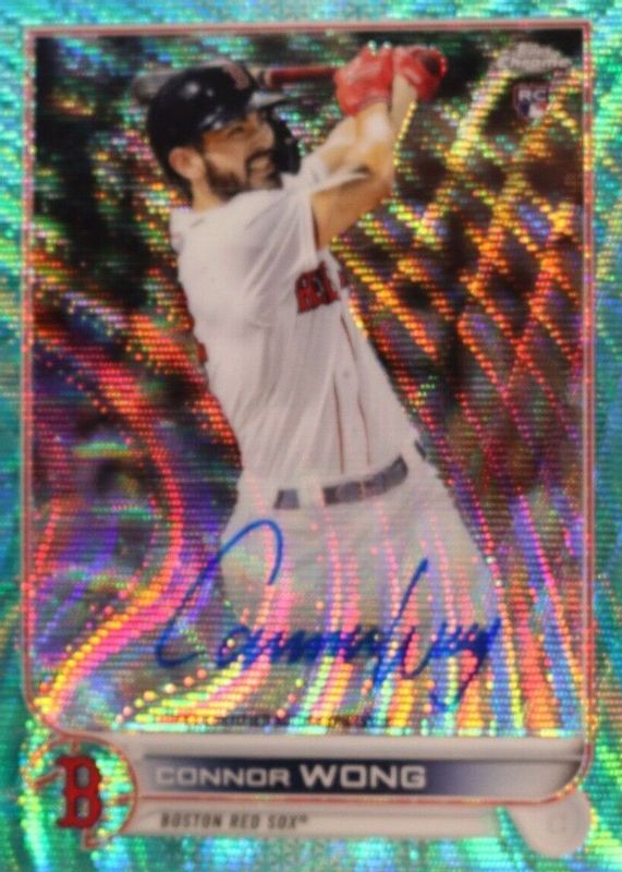 This card is 1 of 15 Connor Wong's card variations in the 2022 Topps Chrome set being tracked by Sports Card Investor, including Rookie Auto, Rookie Auto - Refractor /499, Rookie Auto - Purple Speckle Refractor /299, Rookie Auto - Purple Refractor /250, and Rookie Auto - Blue RayWave Refractor /150.