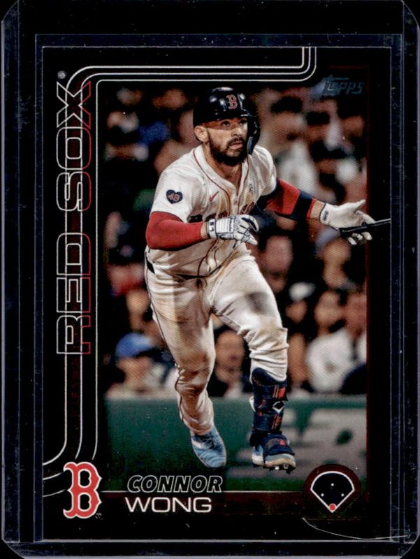 The Connor Wong 2025 Topps #10 Black /74 card is 1 of 63 Connor Wong's card variations in the 2025 Topps set being tracked by Sports Card Investor, including Base, Aqua Holo Foil, Diamante Foil, Holo Foil, and Pink Diamante Foil.
