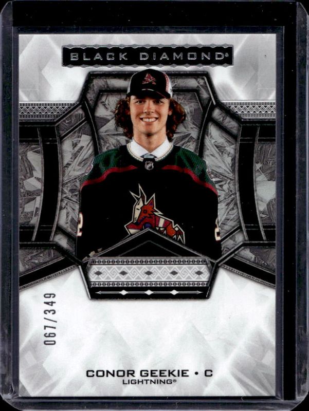 The Conor Geekie 2024 Upper Deck Black Diamond #BDB-GE Base /349 Rookie card is 1 of 17 Conor Geekie's card variations in the 2024 Upper Deck Black Diamond set being tracked by Sports Card Investor, including Diamond Relic Rookies /99, Autographs /49, Diamond Relic Rookies Emerald /10, Emerald /10, and Diamond Relics /5.