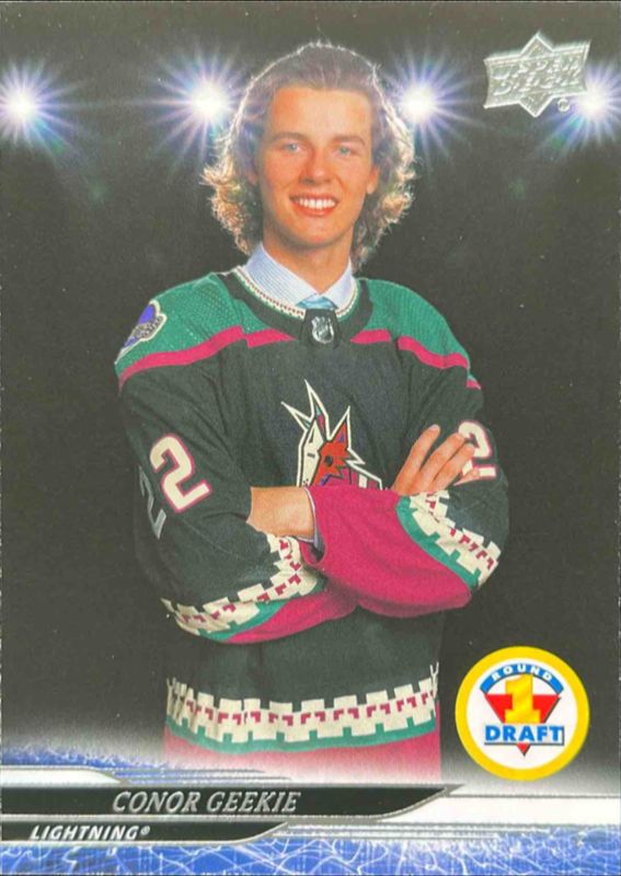 The Conor Geekie 2024 Upper Deck Extended Series #744 Base Rookie card is 1 of 37 Conor Geekie's card variations in the 2024 Upper Deck Extended Series set being tracked by Sports Card Investor, including Clear Cut, Outburst, Deluxe /250, Exclusives /100, and Outburst Red /25.