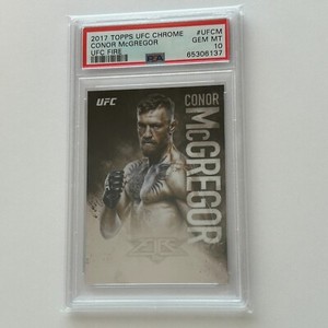 The Conor McGregor 2017 Topps Chrome UFC #UF-CM Fire card in Raw condition has not changed in price in the last 30 days and was last sold for $11.20 .