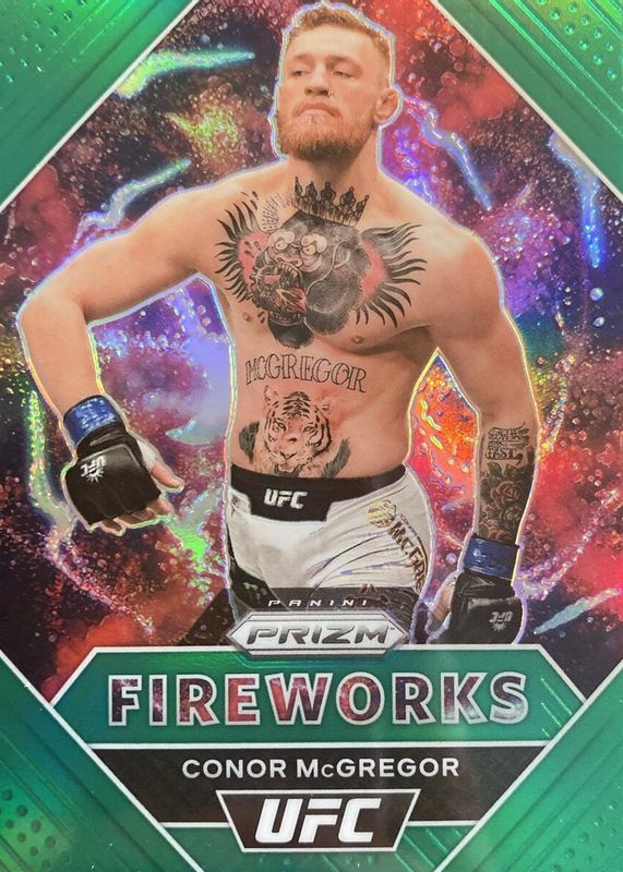 2021 Panini Prizm UFC Conor McGregor, Green Parallel Fireworks Refractor
