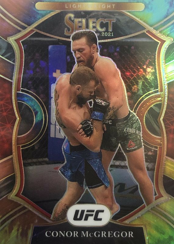 This card is 1 of 56 Conor McGregor's card variations in the 2021 Select UFC set being tracked by Sports Card Investor, including Concourse, Concourse Disco, Concourse Scope, Concourse Silver, and Concourse Tri-Color.