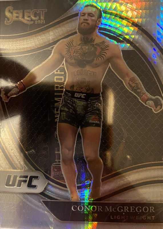 This card is 1 of 56 Conor McGregor's card variations in the 2021 Select UFC set being tracked by Sports Card Investor, including Concourse, Concourse Disco, Concourse Scope, Concourse Silver, and Concourse Tri-Color.