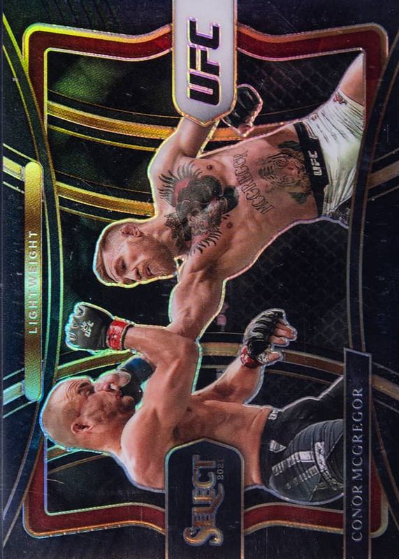 This card is 1 of 56 Conor McGregor's card variations in the 2021 Select UFC set being tracked by Sports Card Investor, including Concourse, Concourse Disco, Concourse Scope, Concourse Silver, and Concourse Tri-Color.