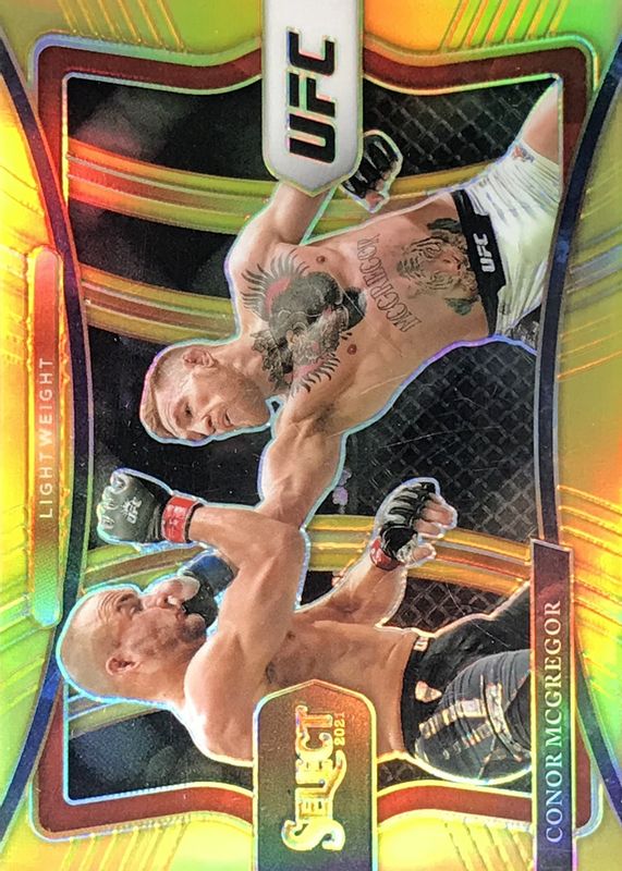 This card is 1 of 56 Conor McGregor's card variations in the 2021 Select UFC set being tracked by Sports Card Investor, including Concourse, Concourse Disco, Concourse Scope, Concourse Silver, and Concourse Tri-Color.