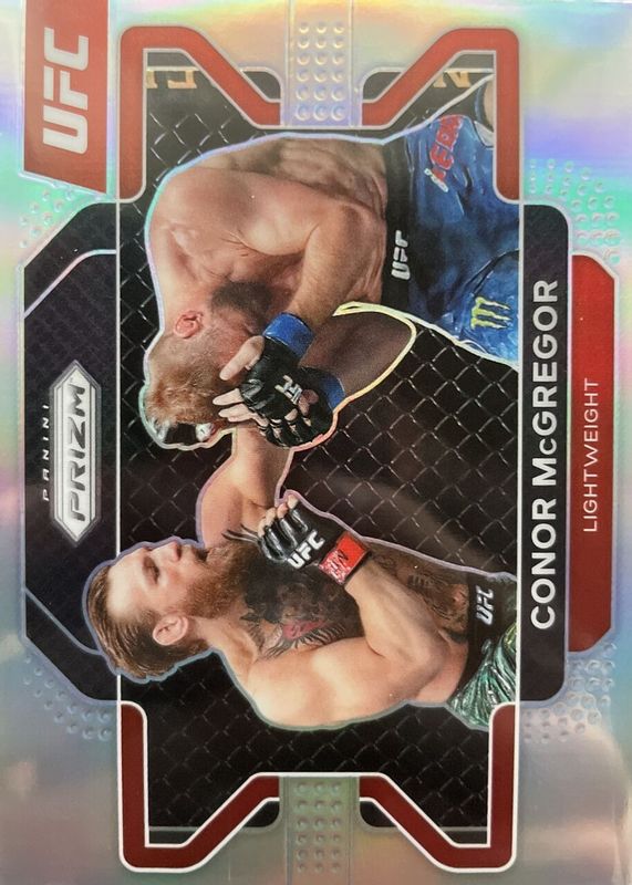 The Conor McGregor 2022 Prizm UFC #39 Silver card in Raw condition has moved down -$2.00 (-40.0%) in the last 30 days and was last sold for $3.00 .