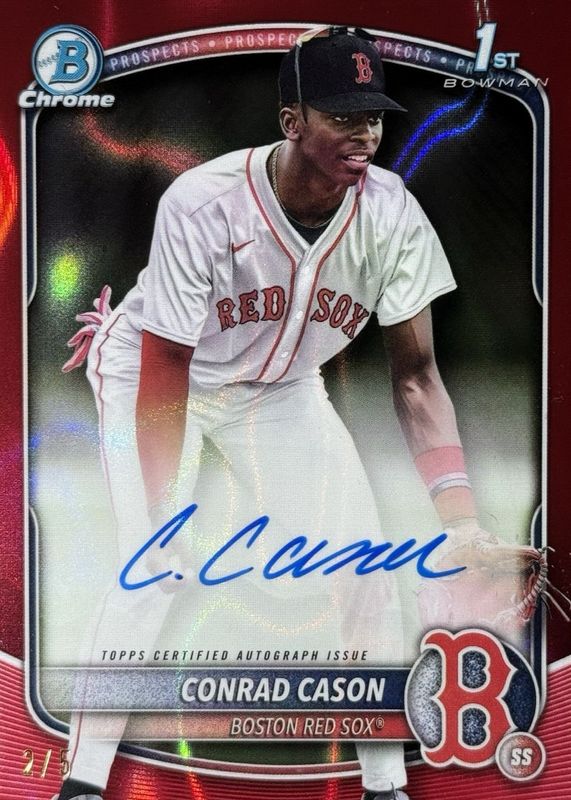 Conrad Cason 2025 Bowman #CPA-CCN Chrome Prospect Auto - Red Lava Refractor /5 (1st) RAW