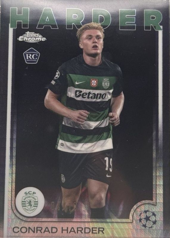 This card is 1 of 44 Conrad Harder's card variations in the 2024 Topps Chrome UEFA Club Competitions set being tracked by Sports Card Investor, including Base, Geometric Refractor, Hongbao Red Refractor, Magenta Shimmer Refractor, and Pulsar Refractor.