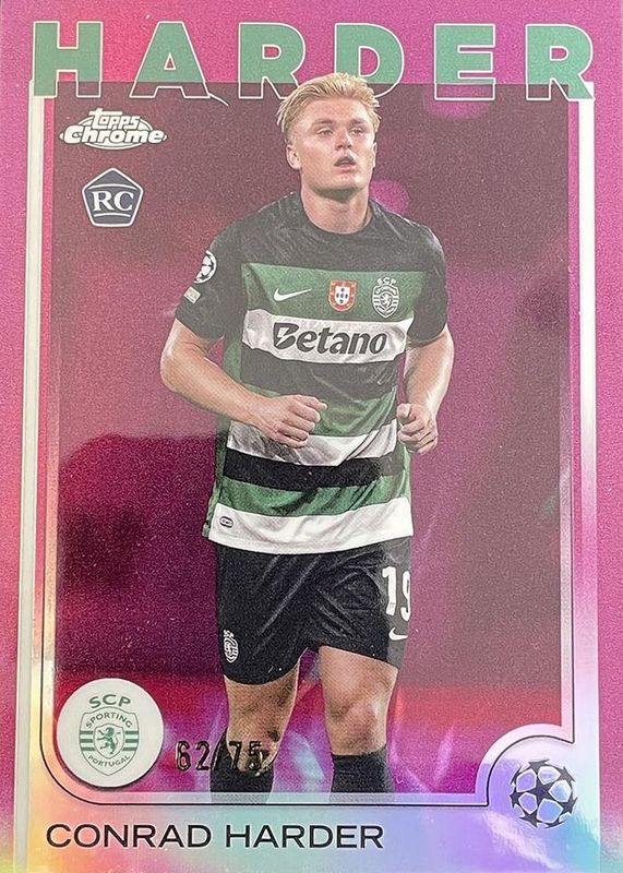 Conrad Harder 2024-25 Topps Chrome UEFA Magenta Refractor 62/75 RC #177