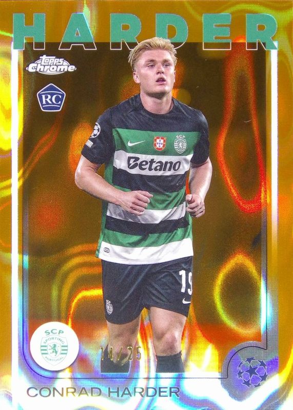 This card is 1 of 44 Conrad Harder's card variations in the 2024 Topps Chrome UEFA Club Competitions set being tracked by Sports Card Investor, including Base, Geometric Refractor, Hongbao Red Refractor, Magenta Shimmer Refractor, and Pulsar Refractor.