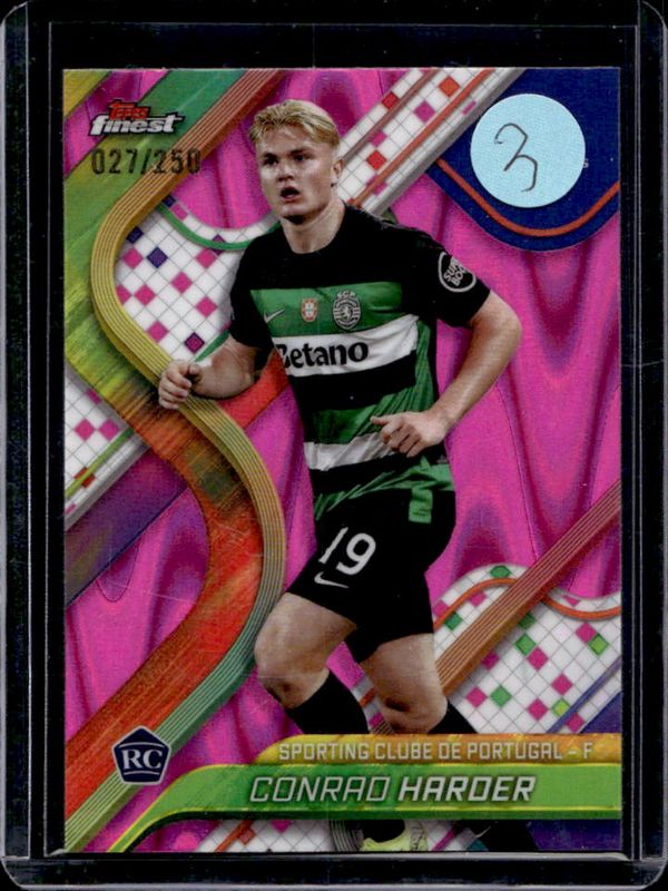 Conrad Harder 2024 Topps Finest UEFA Club Competitions #18 Pink RayWave Refractor /250 Rookie RAW Price Guide