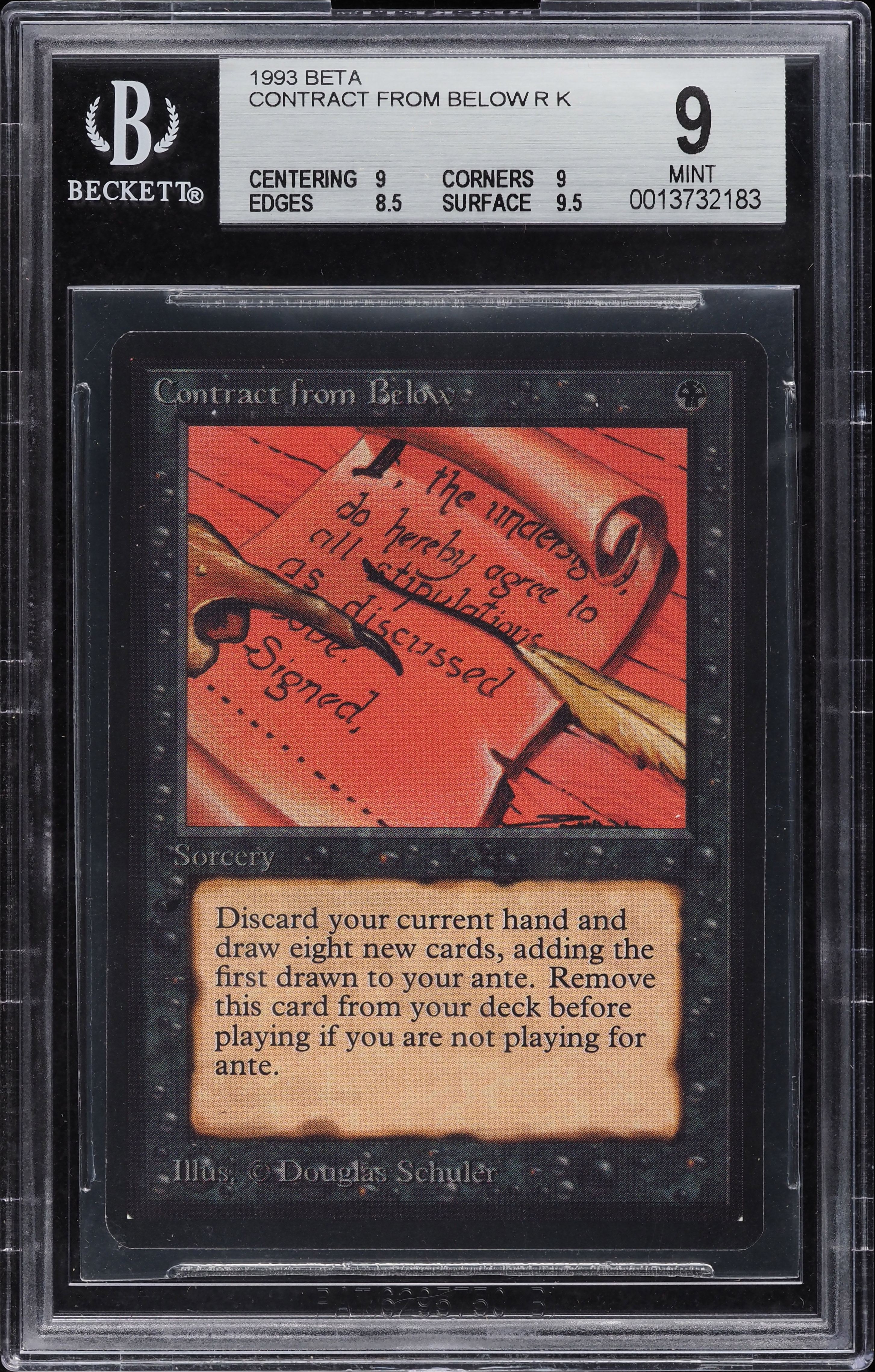 The Contract from Below 1993 Beta Edition Base card in Raw condition has not changed in price in the last 30 days and was last sold for $138.77 .