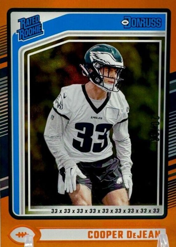 COOPER DEJEAN 2024 DONRUSS RATED ROOKIE ORANGE JERSEY NUMBER RC /33 Q3599