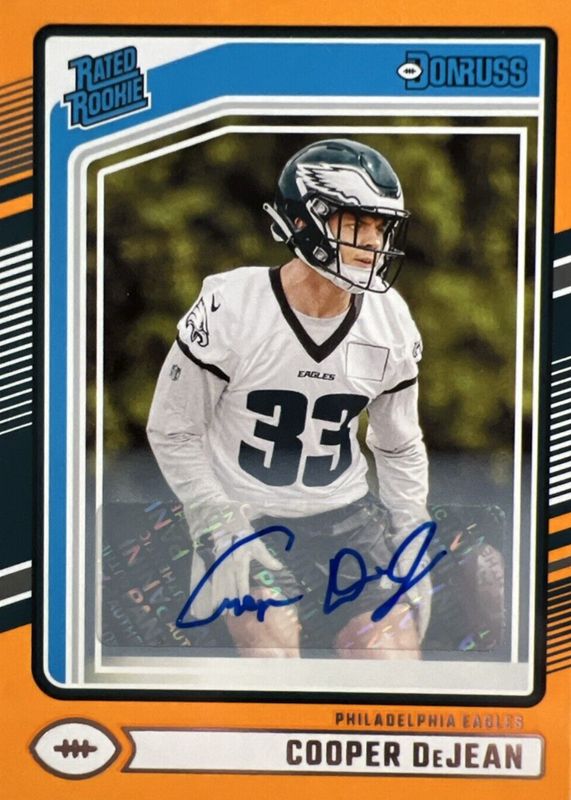COOPER DEJEAN 2024 DONRUSS RATED ROOKIE AUTOGRAPH ORANGE RC AUTO Q1514