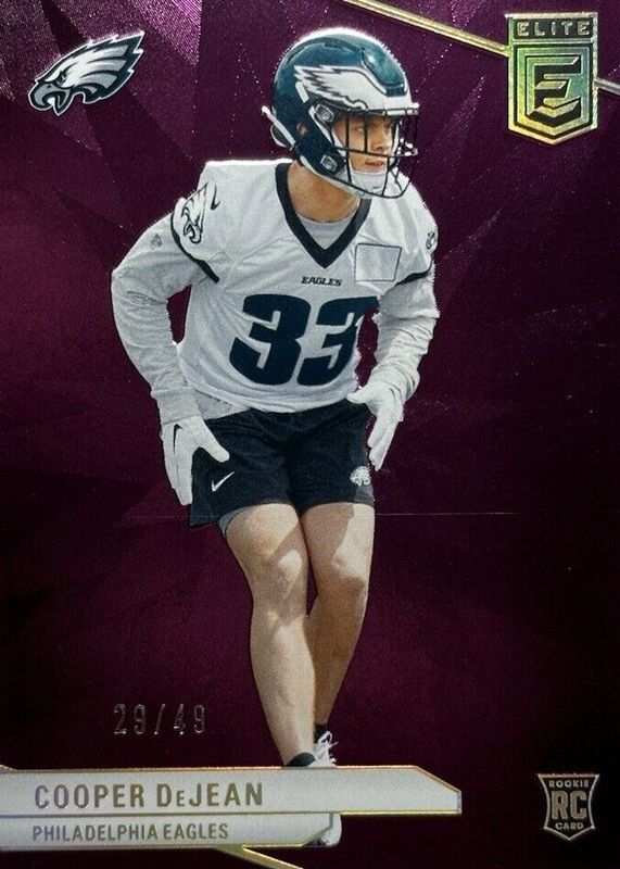 COOPER DEJEAN 2024 PANINI DONRUSS ELITE PURPLE FOIL ROOKIE #/49. RARE.