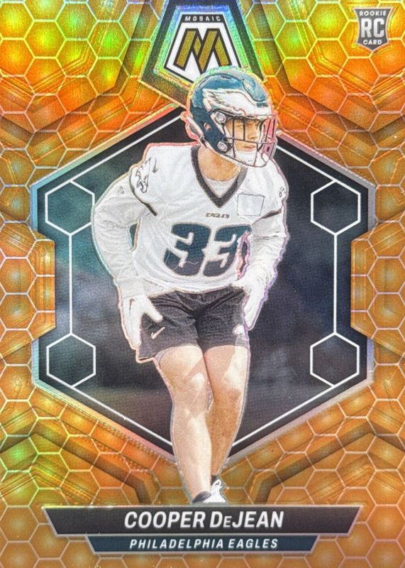 The Cooper DeJean 2024 Mosaic #340 Honeycomb /(SSP) Rookie card in Raw condition has moved down -$3.00 (-5.6%) in the last 30 days and was last sold for $51.00 .