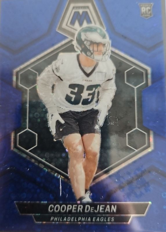 The Cooper DeJean 2024 Mosaic #340 No Huddle Blue /75 Rookie card in Raw condition has not changed in price in the last 30 days and was last sold for $19.99 .