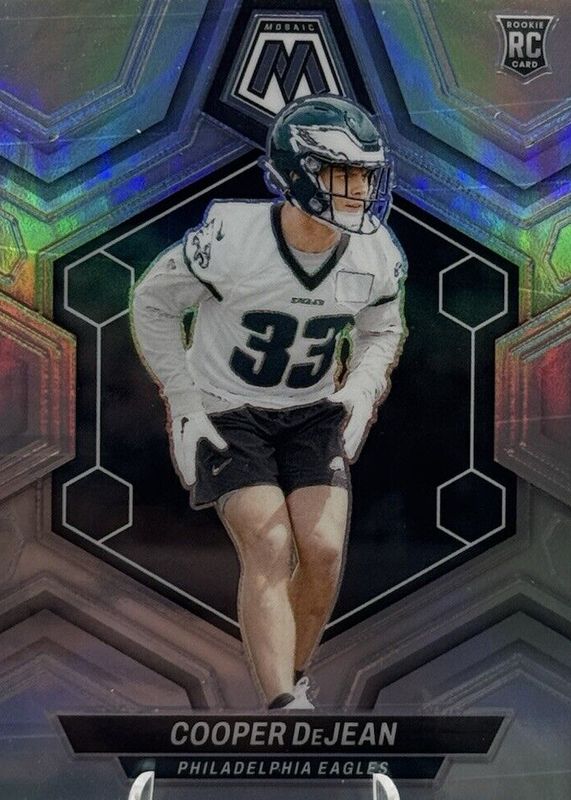 The Cooper DeJean 2024 Mosaic #340 Silver Rookie card in Raw condition has moved up $0.23 (+11.8%) in the last 30 days and was last sold for $2.13 .
