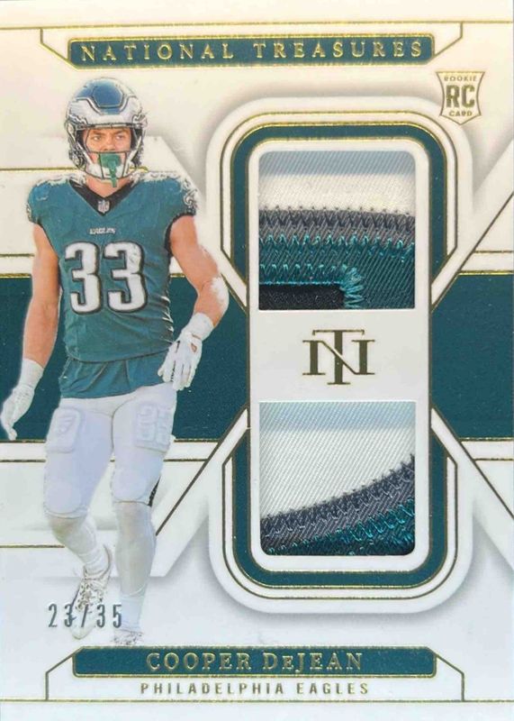 COOPER DEJEAN 2024 NATIONAL TREASURES ROOKIE DUAL MATERIALS PATCH GOLD RC 11/35